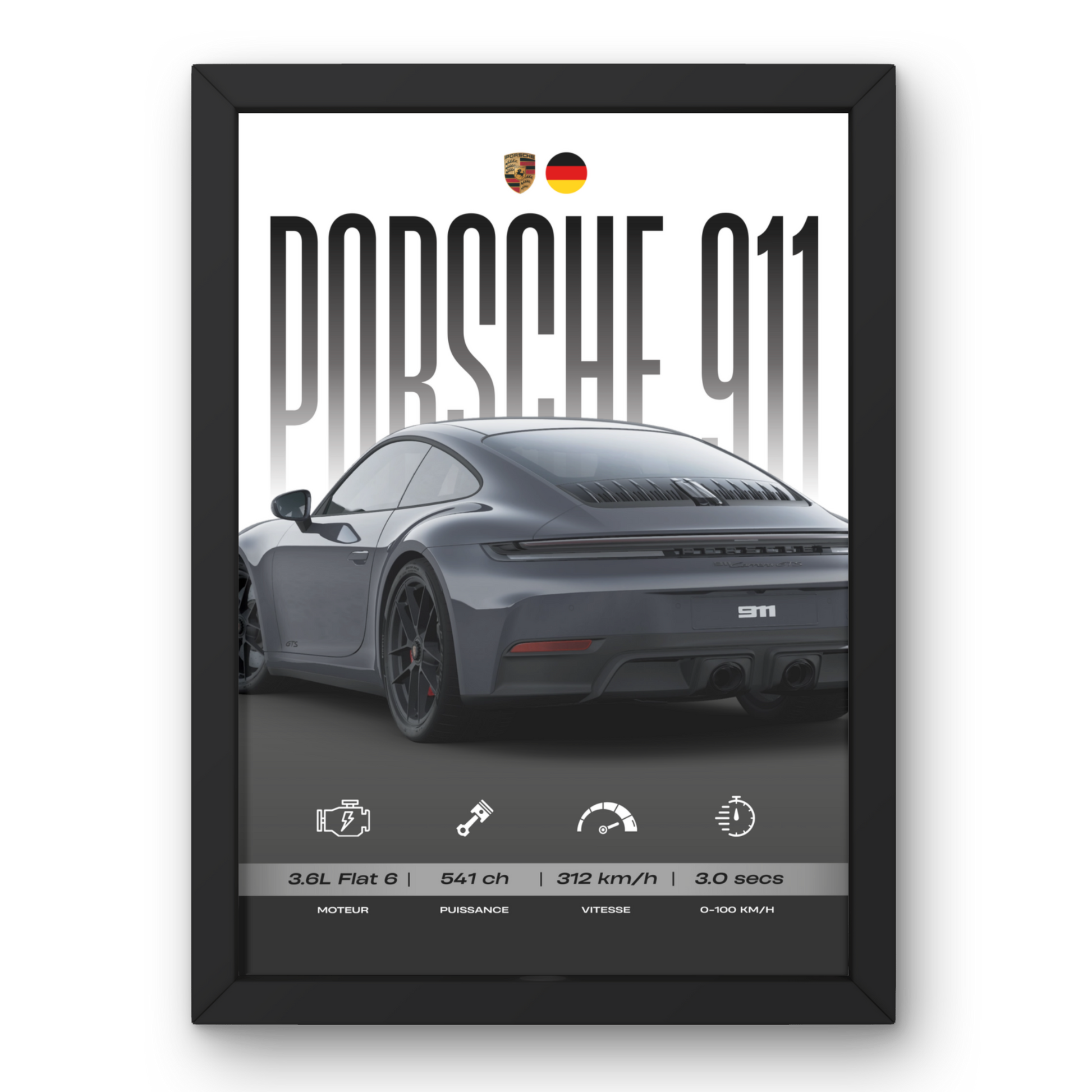 Crée un cadre qui te ressemble : choisis ta voiture de rêve, ton modèle préféré et ses specs légendaires. Chaque impression est réalisée avec soin pour un rendu haut de gamme, prêt à trôner dans ton garage.